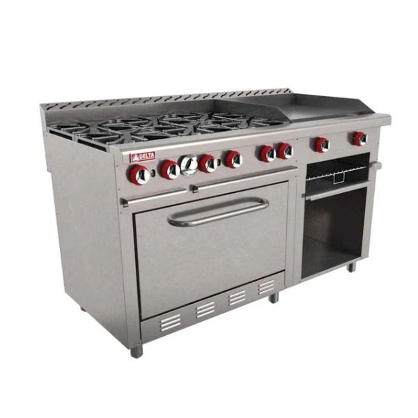 Parrillas superiores individuales de fundicin desmontables con pintura resistente a la flama.n4 Quemadores abiertos de fundicin totalmente desmontables con pintura resistente a la flama con tapa desmontable.n1 Horno 3.9 ft’ (2 Q.T.F)nTermostato: 100¡ a 300¡CnTotal BTU’S/H: 163,000nTotal KCAL/H: 67540.3nConsumo M3/H: 3.76nDimensiones: 72 x 76 x 90 cmnPro: fabricado totalmente en acero inoxidable T-304.nnTop: fabricado totalmente en acero inoxidable T-430.nnMix: fabricado el frente, costados en acero inoxidable 430 con respaldos e interiores en acero aluminizado.nnNotas:nnPrecios sujetos a cambio sin previo aviso.nSujeto a disponibilidad.nLas fotografas son solo ilustrativas.